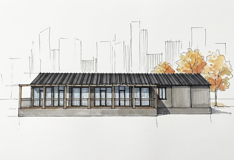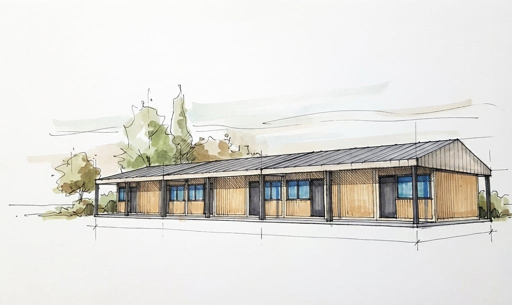 Konstrukcja modułowa oparta na prefabrykowanych elementach, z możliwością dopasowania instalacji, elewacji i układu wnętrza.